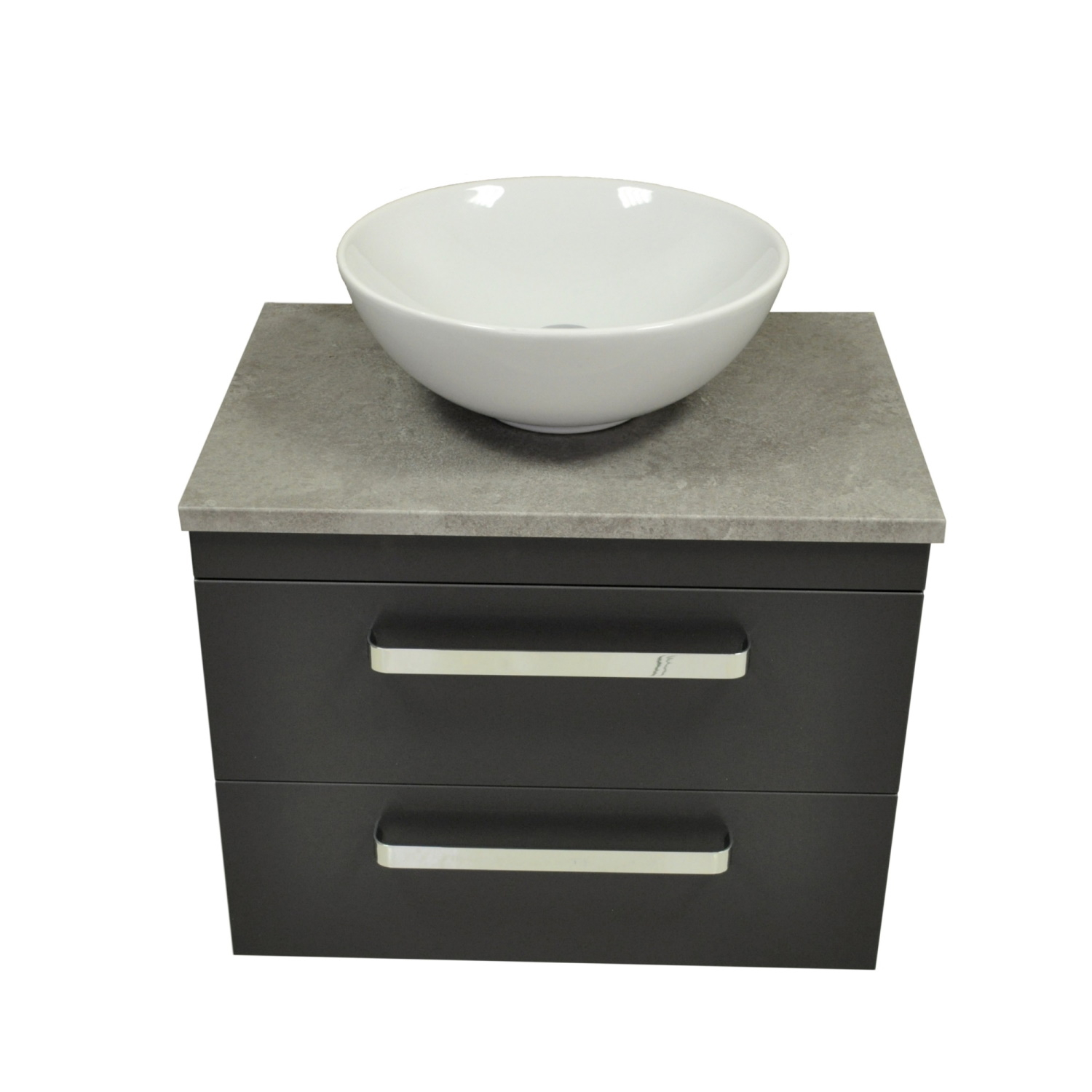 Badkamermeubelset Sanicare Q11 2 Laden 65cm Hoogglans Wit (spiegel optioneel) Deze badkamermeubelset van het merk Sanicare bestaat uit een onderbouwkast, een waskom en een wastafelblad. Dit fraaie badmeubel van Sanicare's Q11-serie staat garant voor kwaliteit en design en is een absolute blikvanger in uw badkamer! De onderkast van dit meubel beschikt over twee laden waarin u diverse badkamerproducten kwijt kunt. Beide laden zijn voorzien van een chromen greep waardoor u de laden gemakkelijk open- en dichtdoet. Het product is verder voorzien van soft-closing Blum scharnieren die ervoor zorgen dat de laden zacht en geruisloos gesloten worden. De onderkast heeft een breedte van 63,4 cm, een diepte van 45,1 cm en een hoogte van 66 cm en is geproduceerd in de kleur hoogglans wit. De waskom die bij deze set hoort heeft een doorsnede van 40 cm en een hoogte van 15,5 cm. De waskom is wit van kleur en is gemaakt van keramiek materiaal. Dit geeft in combinatie met de onderkast een sfeervolle ambiance aan uw badkamer! Verder vindt u bij deze set een wastafelblad waarop u de waskom kunt bevestigen. Deze wastafelbladen zijn beschikbaar in de kleuren grey-stone en black-stone, wat zorgt voor een warme indruk in uw badkamer. Het wastafelblad heeft een breedte van 63,4 cm en een diepte van 45 cm en sluit hiermee naadloos aan op de overige producten van deze fraaie badkamermeubelset. Deze badkamermeubelset wordt geleverd zonder spiegel. U heeft de optie om één van de vele Sanicare spiegels toe te voegen aan deze set om het gehele meubel compleet te maken. Bovendien is de set in meerdere kleuren te verkijgen: naast hoogglans wit wordt deze set ook verkocht in de kleuren belluno-eiken, antraciet, schots-eiken, grey-wood en truffel. Om het badkamermeubel compleet te maken dient u nog een sifon, een afvoer en een kraan te bestellen. De set wordt compleet geleverd met: – Onderbouwkast met 2 laden – Soft-Close Blum-scharnieren – 1 waskom (materiaal: keramiek) – 1 Universeel kraangat – Wastafelblad grey-stone of black-stone Meubel maten – Breedte: 63,4 cm – Hoogte: 66 cm – Diepte: 45,1 cm