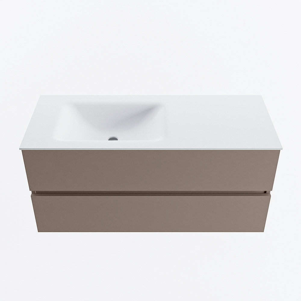 MONDIAZ VICA 110cm badmeubel onderkast Smoke 2 lades. Wastafel CLOUD links 1 kraangat, kleur Talc.