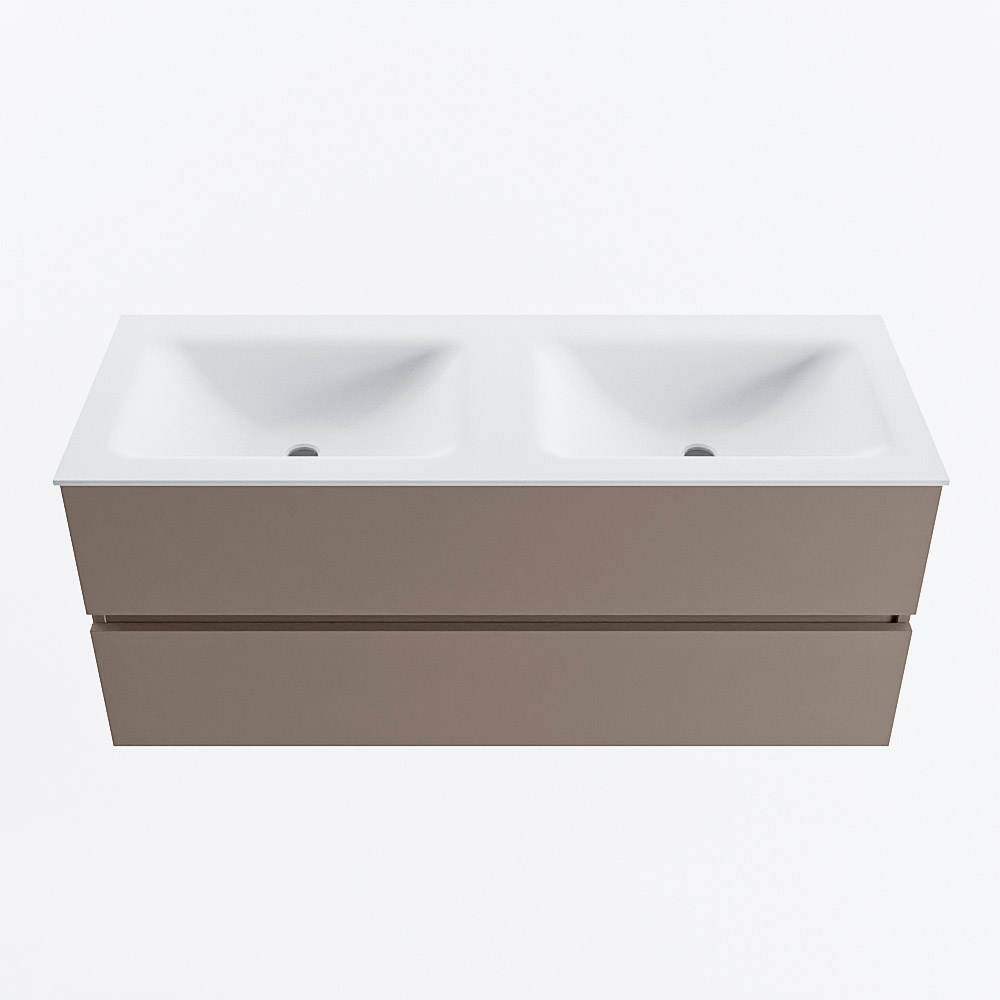 MONDIAZ VICA 120cm badmeubel onderkast Smoke 2 lades. Wastafel CLOUD dubbel zonder kraangat, kleur Talc.