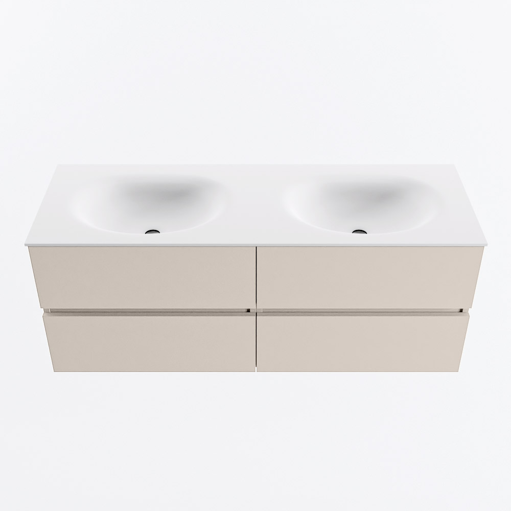 MONDIAZ VICA 130cm badmeubel onderkast Linen 4 lades. Wastafel MOON dubbel 2 kraangaten, kleur Talc.