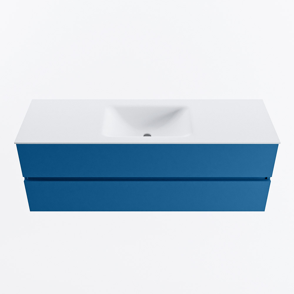 MONDIAZ VICA 140cm badmeubel onderkast Jeans 2 lades. Wastafel CLOUD midden 1 kraangat, kleur Talc.