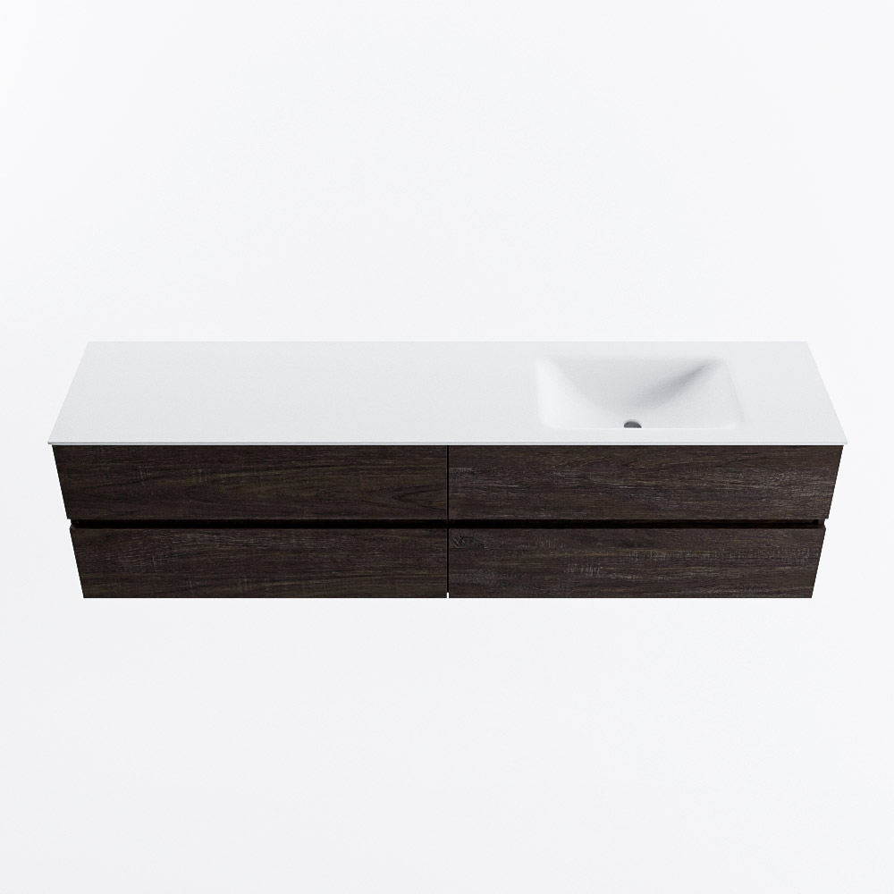 MONDIAZ VICA 190cm badmeubel onderkast Dark Brown 4 lades. Wastafel CLOUD rechts zonder kraangat, kleur Talc.